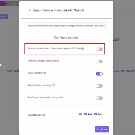Afterward, you import the CSV file or a Sales Navigator search URL containing all the leads you’ve targeted.