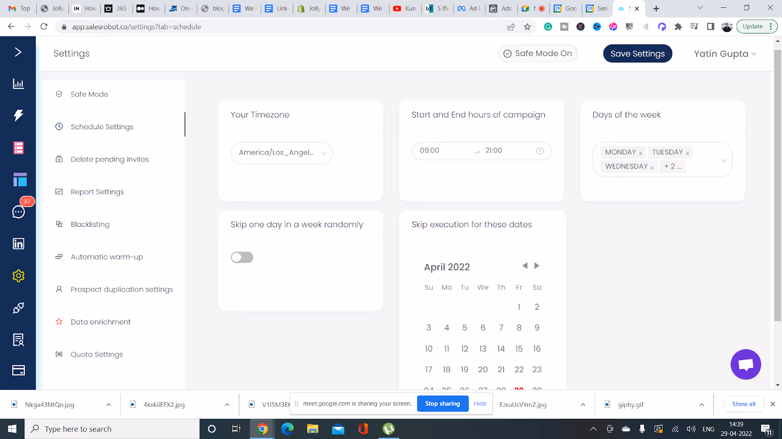 If you don’t want to worry about the number of email invites you’ve sent in a day, you can always set up limits and fine-tune many parameters inside Sales Robot, such as: