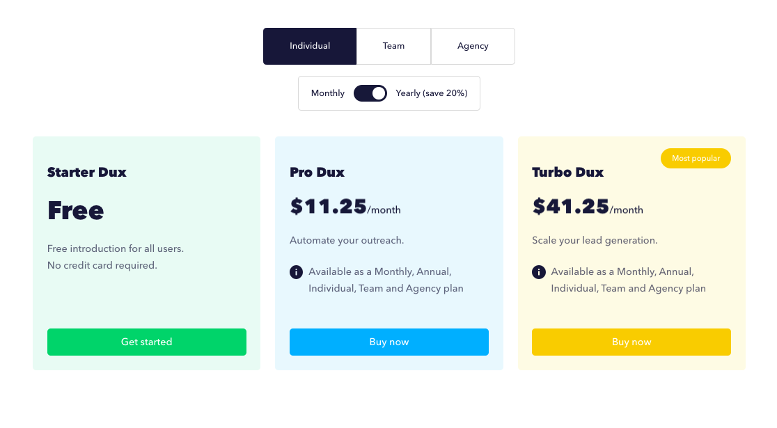 SalesRobot offers 3 pricing plans (very similar to Dripify), however, each one here aims to grow your network on LinkedIn and get you more leads