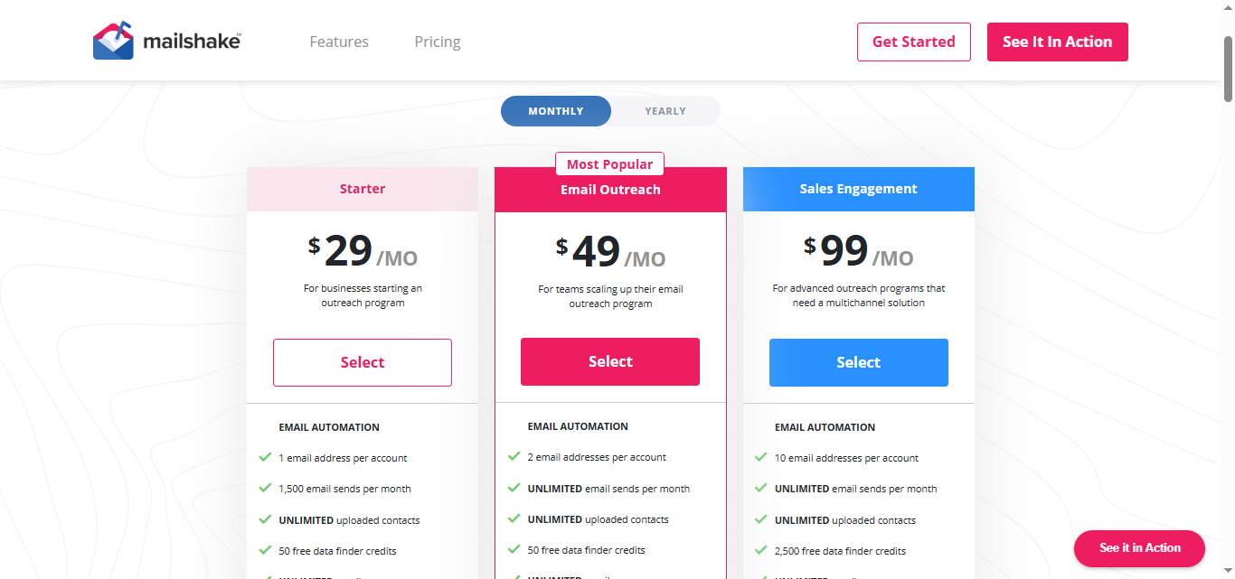 Mailshake Pricing (per user, no free trial)