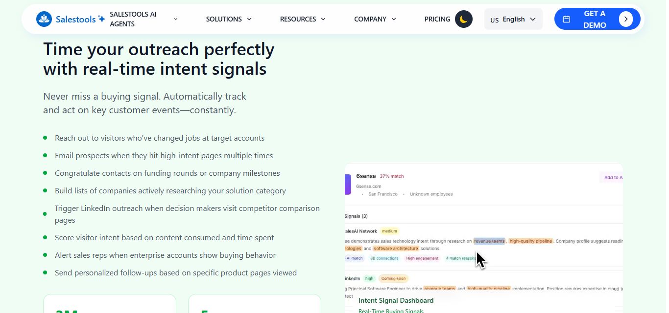 Salestools tracks buying signals across 3 million-plus companies and triggers outreach at moments when prospects are most likely to engage.